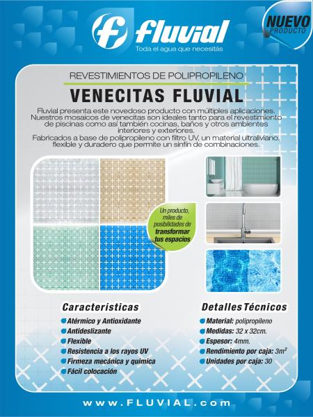 Fluvial presenta las Venecitas Plásticas. Un novedoso producto con múltiples aplicaciones. Ideales tanto para el revestimiento de piscinas como cocinas, baños y otros ambientes interiores y exteriores.